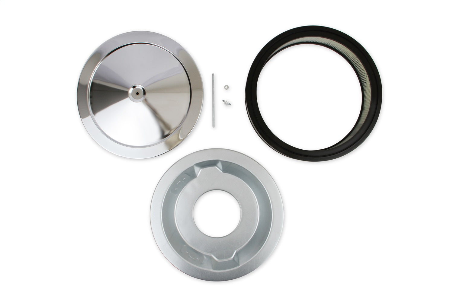 Mr. Gasket Chrome Easy-Flow Air Cleaners are designed to fit most single 2-, 3-, and 4-barrel carburetors with 5-1/8 inch carburetor necks, these competition air cleaners are for either race or high-performance street use. Chrome plated steel lid and base with a paper element. Includes matching stud and wing nut.