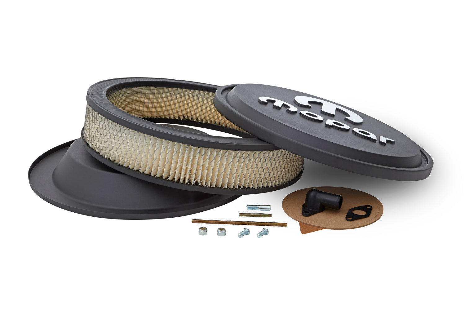 Description_MKT | Slant-Edge Air Cleaners are the perfect way to complete your dress-up look in premium Slant-Edge style. If you've got black valve covers, this thing will set your engine bay OFF like no other air cleaner. The over-sized CNC machined MOPAR emblem is next level. They are supplied with genuine 3" GM air filter elements (GM P/N 6421746, AC Delco P/N A212CW) for maximum airflow. Each kit is supplied with necessary mounting hardware. Technical Note: After installing a new air cleaner, always lower the hood slowly to confirm sufficient clearance visually. Minimum clearance of 3-3/4" is required from the top of the carburetor gasket area to the underside of the hood. The air cleaner base is recessed for a low profile appearance. Patented Design. |